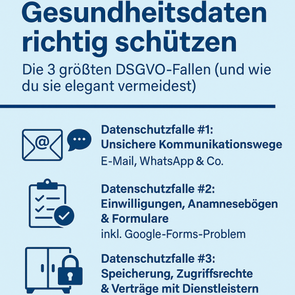 Wenn man mit Gesundheitsdaten arbeitet – sei es in einer Praxis, einem Coaching-Business oder in einem therapeutischen Umfeld – tragen Unternehmen eine besondere Verantwortung. Diese Verantwortung geht weit über die reine Behandlung oder Beratung hinaus, denn Kunden und Patienten vertrauen ihre sensibelsten Informationen an. Dazu gehören nicht nur offensichtliche Angaben wie Diagnosen, Anamnesebögen oder Laborwerte, sondern auch Gesprächsnotizen, Verlaufsprotokolle, Coaching-Zusammenfassungen oder sogar kleine Details, die Rückschlüsse auf den körperlichen oder seelischen Zustand zulassen. Genau deshalb sind Gesundheitsdaten nach der DSGVO eine besonders geschützte Kategorie personenbezogener Daten – und der Gesetzgeber verlangt, dass man sie mit höchster Sorgfalt behandelt.